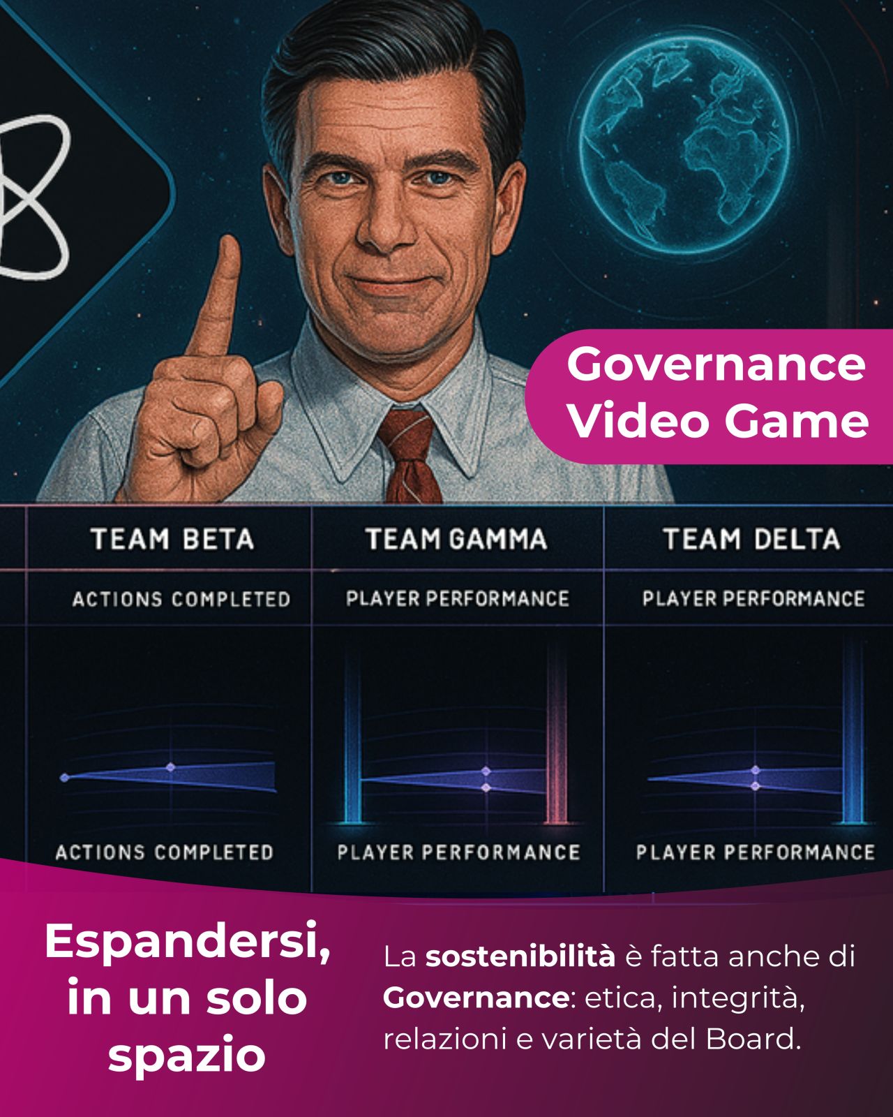 La sostenibilità è fatta anche di Governance che significa: informazioni corrette, conoscenze valide, amministrazione sensibile ed etica nella generazione del profitto. Nel nuovo #videogame Space Governace Simulator la missione è guadagnare spazio evitando una guerra informatica: attenzione troppa ambizione può portare alla collisione 🛰️💥
